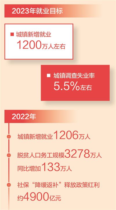 政府工作報(bào)告提出今年發(fā)展主要預(yù)期目標(biāo)中,城鎮(zhèn)新增就業(yè)1200萬(wàn)人左右,城鎮(zhèn)調(diào)查失業(yè)率5.5%左右。