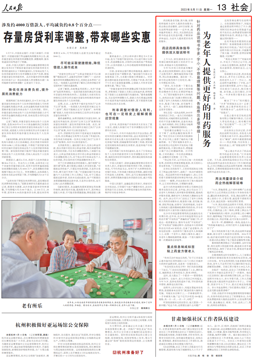 藥店配備老花鏡、放大鏡,安排藥師值班為老年人提供咨詢服務(wù);藥企推出語音播報、全時空客服、簡化說明等創(chuàng)新舉措……近年來,越來越多的地方、單位,關(guān)注到藥品說明書的適老化改造問題,不斷探索多種途徑,為老年人提供更好的用藥服務(wù)。