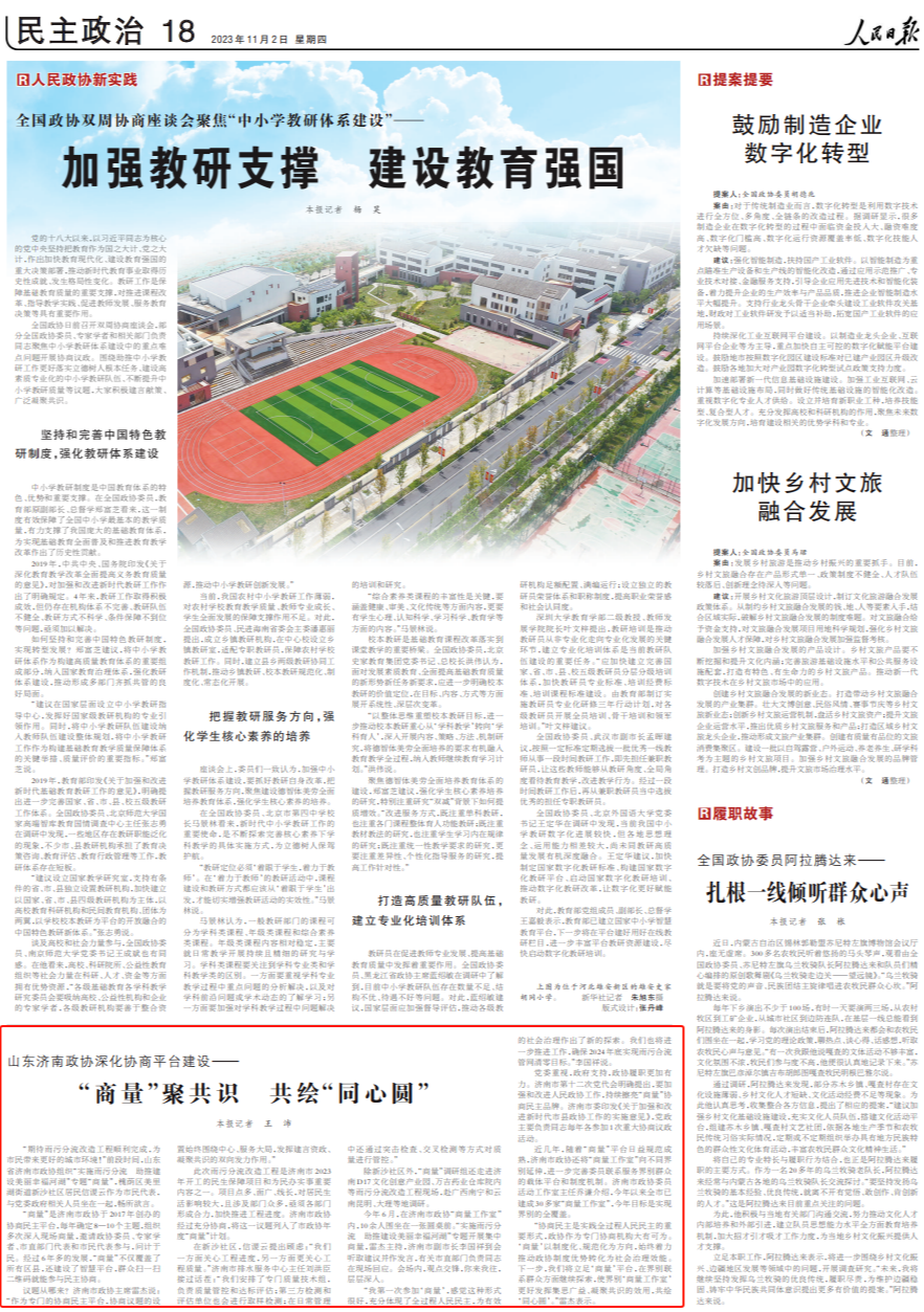 人民日?qǐng)?bào)點(diǎn)贊濟(jì)南政協(xié)深化協(xié)商平臺(tái)建設(shè):“商量”聚共識(shí) 共繪“同心圓”