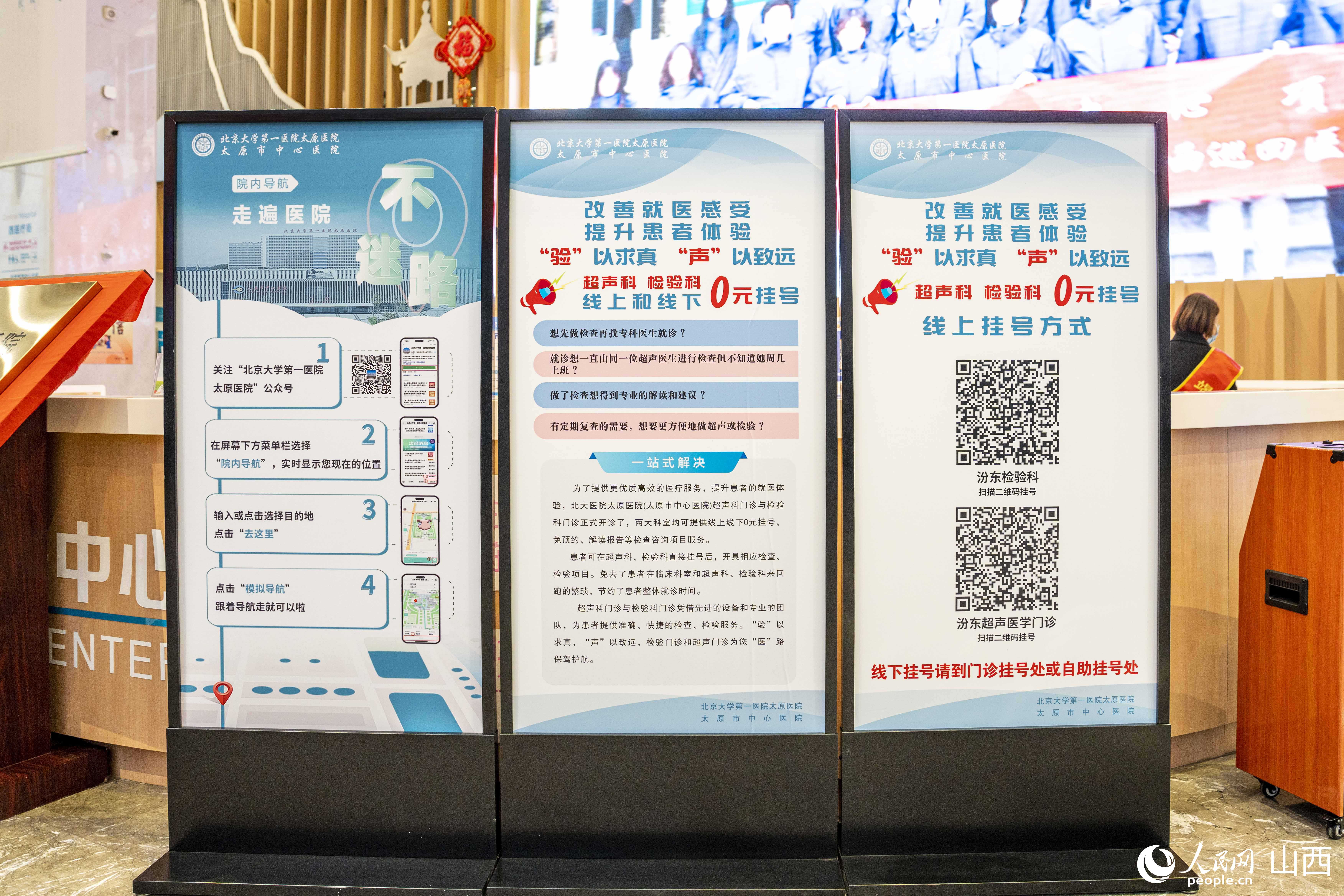 北大醫(yī)院太原醫(yī)院門(mén)診大廳設(shè)立相關(guān)內(nèi)容展板。人民網(wǎng) 盧鵬宇攝