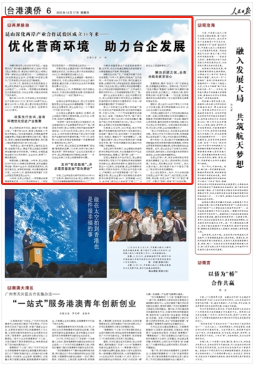 人民日報丨江蘇昆山:優(yōu)化營商環(huán)境 助力臺企發(fā)展
