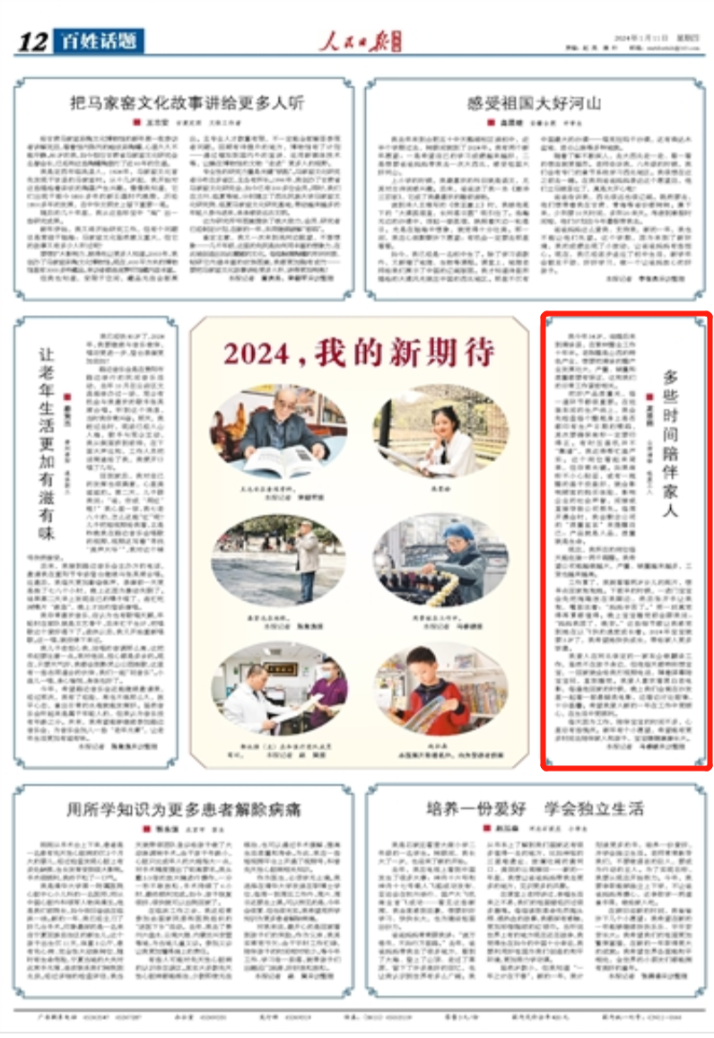 對(duì)我來說,最開心的是回家看到孩子們的笑臉。作為父親,我其實(shí)常覺虧欠:由于平時(shí)工作忙碌,陪伴孩子的時(shí)間相對(duì)較少。等今年工作、學(xué)習(xí)告一段落,就帶孩子們出趟遠(yuǎn)門旅游,好好放松放松。