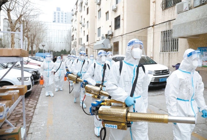 朝陽藍天救援隊22名隊員近日換上防護服,走進六里屯甜水西園等3個社區(qū),為社區(qū)做防疫消殺,以減輕社區(qū)和物業(yè)工作人員的壓力。隊員們穿著防護服、佩戴口罩、安全帽、橡膠手套,手持70多斤重的彌霧機和藥箱,采用地毯式噴灑消毒的方式,對社區(qū)封(管)控區(qū)的道路、綠化帶等區(qū)域進行細致消殺,確保小區(qū)內無死角、無盲區(qū)。