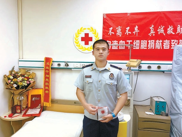 2021年5月,劉明航接到天津市紅十字會(huì)來電,他與一名2007年出生的血液病患者初配型成功,他毫不猶豫地回復(fù)愿意捐獻(xiàn)并前往天津,順利通過體檢和高分辨配型,并于同年6月完成捐獻(xiàn)。今年3月,他又接到北京市紅十字會(huì)的電話,患者病情出現(xiàn)了反復(fù),需要再進(jìn)行淋巴細(xì)胞移植鞏固治療?!爱?dāng)我接到需要二次捐獻(xiàn)的消息時(shí),我心里其實(shí)沒有絲毫猶豫,因?yàn)槲沂且幻绬T,聽到救人,是義無反顧的?!闭f服了母親,劉明航再次前往采集淋巴細(xì)胞的醫(yī)院。