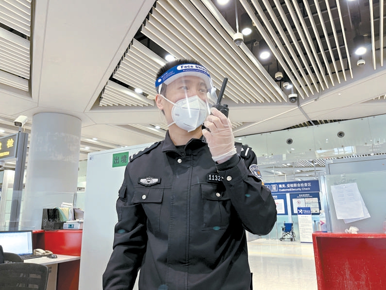張浩在首都國際機場邊檢出境現(xiàn)場執(zhí)勤。
