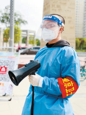 “請(qǐng)大家按照腳下兩米線標(biāo)識(shí)排隊(duì),自覺保持安全距離,謝謝配合!”5月9日,望京體育公園核酸檢測(cè)點(diǎn)的隊(duì)伍已經(jīng)排成了長(zhǎng)龍,志愿者袁乾銘站在隊(duì)伍旁邊一直忙個(gè)不停,沒有絲毫分神。從早上6點(diǎn)30分到達(dá)檢測(cè)點(diǎn)做各項(xiàng)準(zhǔn)備,到晚上8點(diǎn)收工,這段時(shí)間以來,袁乾銘一直嚴(yán)格執(zhí)行這張時(shí)間表。