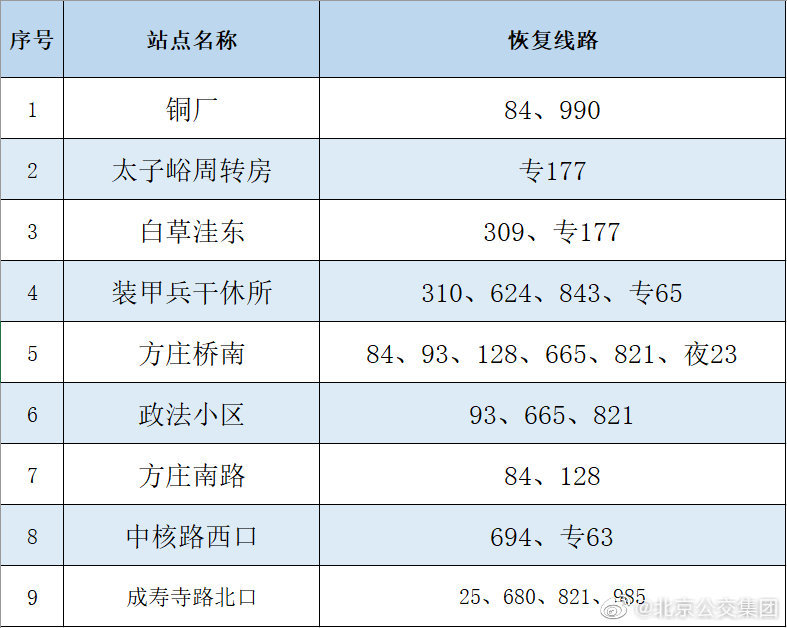 央廣網(wǎng)北京6月16日消息 據(jù)北京公交集團(tuán)官博消息,按照防疫工作要求,自2022年6月16日首班車起,對前期途經(jīng)昌平區(qū)封管控區(qū)域周邊采取甩站措施的35條線路以及前期途經(jīng)豐臺區(qū)封管控區(qū)域周邊采取甩站措施的18條線路,恢復(fù)正常運(yùn)營,恢復(fù)信息詳見下表。