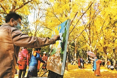 藝術(shù)家進園林,“落葉拼金秋”,在參觀完地壇公園內(nèi)標志性的點位后,藝術(shù)家們帶著自己的作畫工具,選取心儀的一角,用畫筆勾勒心中最美地壇。園內(nèi),還有群眾自發(fā)的樂隊、舞蹈團等藝術(shù)團體及攝影愛好者,用自己獨特的方式“記錄”地壇秋景,讓古老地壇充分沾染“文藝范兒”。
