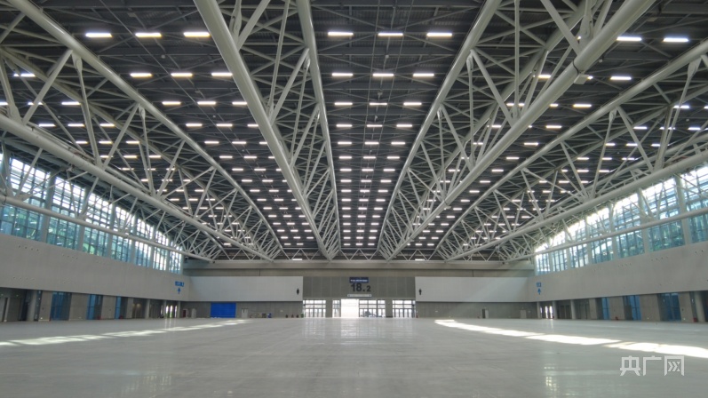 廣交會(huì)D區(qū)二層為4個(gè)面積為12000㎡的展廳,凈高度為18~21米(央廣網(wǎng)記者 夏燕 攝)
