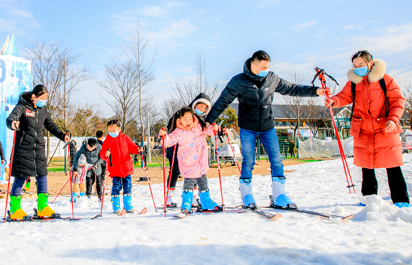 據了解,阜寧金沙湖旅游度假區(qū)連續(xù)10年打造滑雪場,舉辦冰雪嘉年華系列活動,讓游客和廣大市民在家門口體驗冰雪運動的樂趣?!敖衲旰屯暌粯樱覀円M6臺進口造雪機、壓雪車等設備,建成長200米、寬50米的初中級滑道,同時在廣場上建設近1000平方米的滑冰場,配備專業(yè)運動器具?!备穼幗鹕澈﹫龅剡\營總經理張亞亞介紹,元旦假期,金沙湖滑雪場和滑冰場正式對外開放,20多名來自中國最大的亞布力滑雪場的專業(yè)教練在現(xiàn)場指導游客進行滑雪滑冰,保證游客安全。