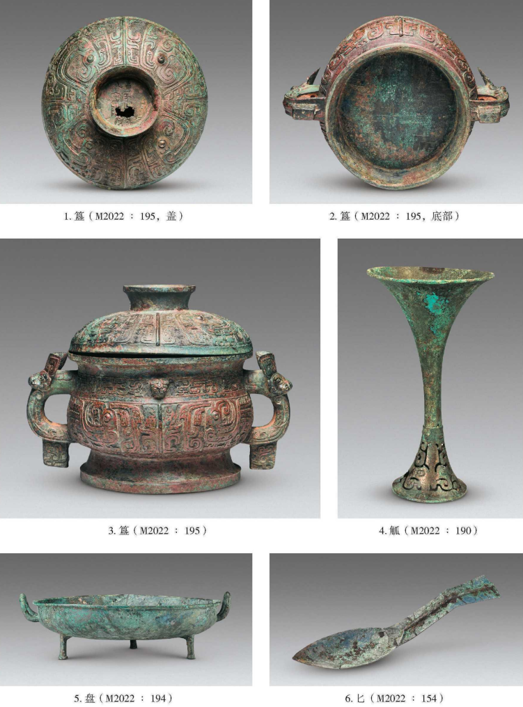 此次公布考古資料的墓葬為M2022墓,該墓葬墓室較大,且東側對應陪葬一座較大的車馬坑。墓內(nèi)隨葬器物種類豐富,數(shù)量較多,包括青銅器1045件(套)、玉器60件(套),其中青銅禮、樂器16件,且發(fā)現(xiàn)殉人和殉狗,顯示墓主人具有較高的社會地位。