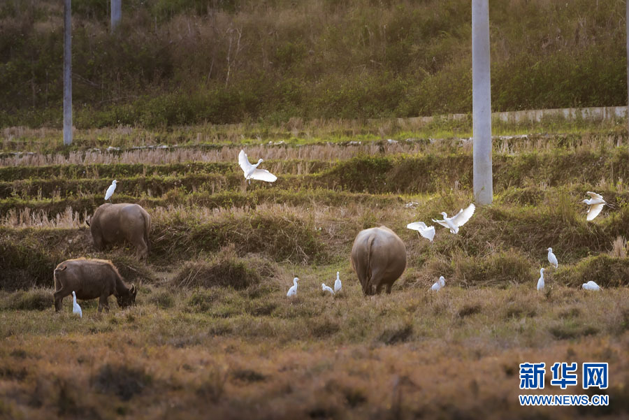 廣西德保:鄉(xiāng)村生態(tài)美 白鷺展翅飛