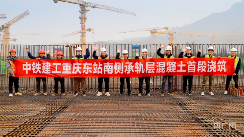 數(shù)九寒天,項目建設者奮戰(zhàn)正酣。1月13日,由中鐵建工集團承建的重慶東站二標項目南側站房第一段258承軌層結構首方混凝土順利澆筑,為后續(xù)站臺主體結構施工奠定了基礎。
