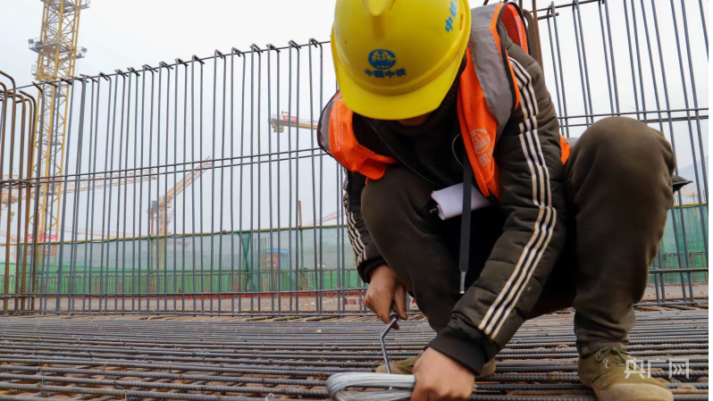 工人捆扎鋼筋(央廣網(wǎng)發(fā) 王澤峰攝)