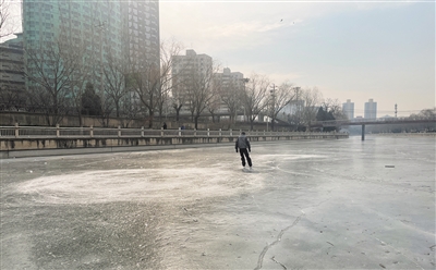 2月5日,南護(hù)城河,一位市民在滑冰。新京報(bào)記者 徐巧麗 攝