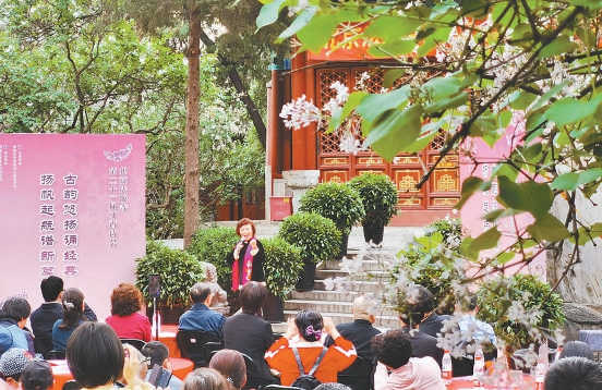在10日的丁香詩會(huì)上,朗誦藝術(shù)家為觀眾帶來詩詞朗誦表演。本報(bào)記者 方非攝