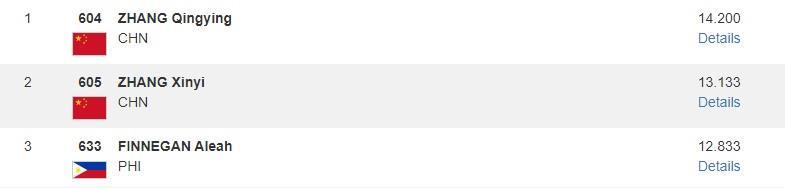 女子平衡木項(xiàng)目,中國(guó)隊(duì)包攬冠亞軍。張清穎以14.200分獲得冠軍,張欣怡以13.133分收獲亞軍。