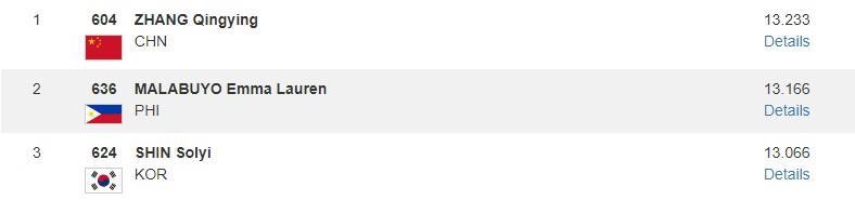 女子自由操項(xiàng)目,張清穎以13.233分再奪一枚金牌。另一名中國(guó)選手邱祺緣以12.133分排名第七。