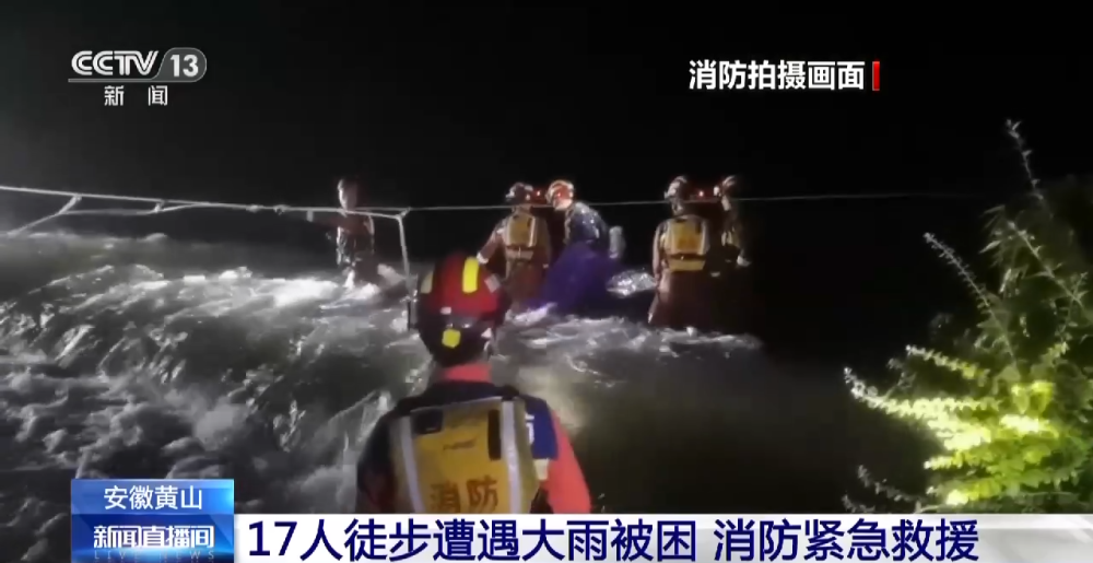 安徽黃山17人徒步遭遇大雨被困 消防緊急救援