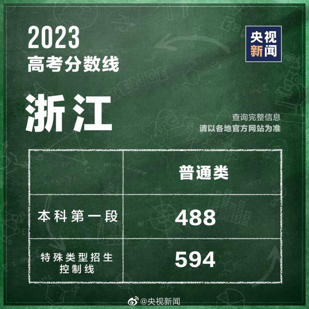 浙江公布2023高考分?jǐn)?shù)線: