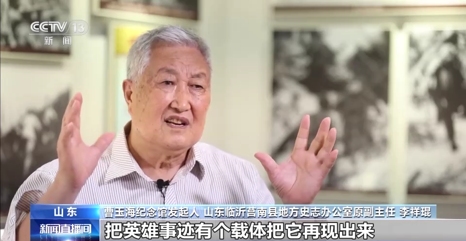 曹玉海紀(jì)念館發(fā)起人 山東臨沂莒南縣地方史志辦公室原副主任 李祥琨:建曹玉海紀(jì)念館就是把英雄事跡有個載體把它再現(xiàn)出來,教育和鼓舞、沂蒙人民不斷前進(jìn)、艱苦奮斗、奪取勝利。