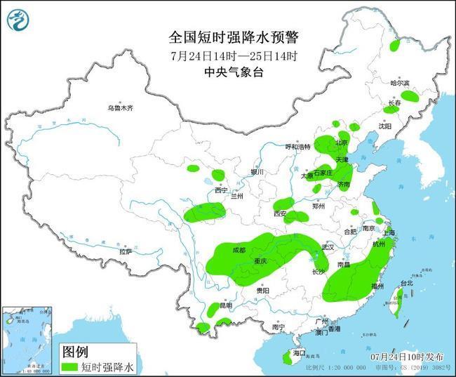 中央氣象臺(tái)7月24日10時(shí)發(fā)布強(qiáng)對(duì)流天氣藍(lán)色預(yù)警