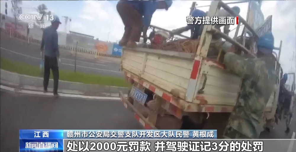 江西贛州市公安局交警支隊開發(fā)區(qū)大隊民警 黃根成:對貨車駕駛?cè)诉`反規(guī)定載客,超過十人的違法行為處以2000元罰款,駕駛證記3分的處罰。同時,我們對現(xiàn)場的施工人員進行了交通安全教育,強調(diào)他們這樣乘車的危害性,并對工地負責人下達了隱患整改通知書,并進行警示約談。