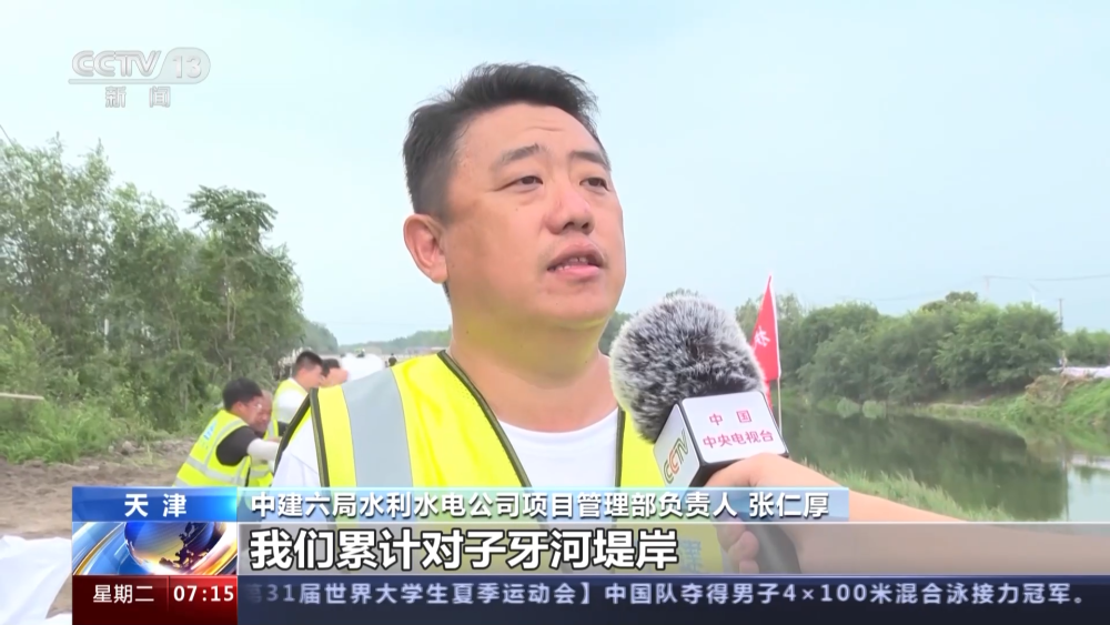中建六局水利水電公司項目管理部負責人 張仁厚:我們累計對子牙河堤岸進行7.9公里的加高加固。接到緊急施工任務以后,我們迅速抽調(diào)人員、設備,將子牙河左岸堤壩由7米加高到8米,此項工作一到兩天內(nèi)施工完成。