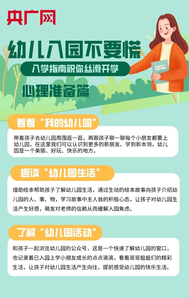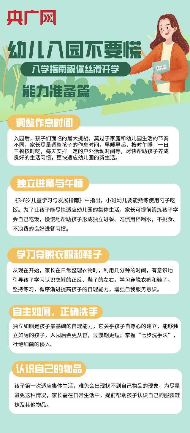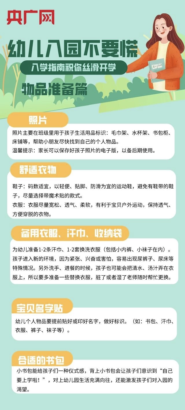 央廣網(wǎng)北京8月27日消息 幼兒園是人生的第一所學(xué)校,在這里,孩子們將開啟真正的學(xué)習(xí)生活和社會(huì)生活??梢哉f,這一階段對(duì)于孩子的性格塑造和習(xí)慣養(yǎng)成都有著十分重要的影響。那么幼兒入園前,新手爸媽應(yīng)該做好哪些準(zhǔn)備工作呢?別慌,這份入學(xué)指南請(qǐng)收藏!