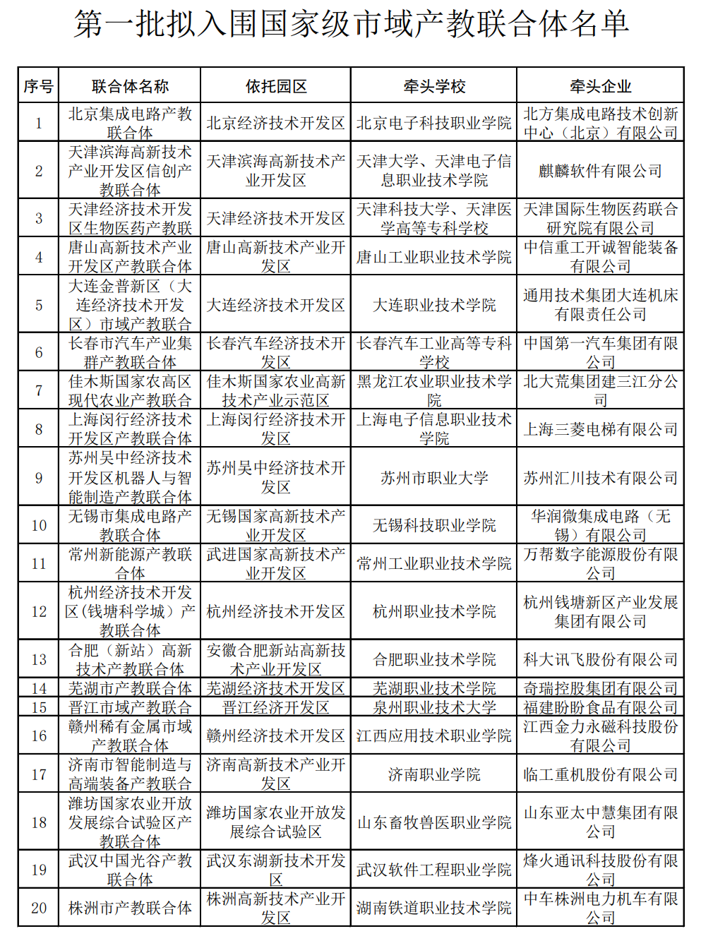 第一批擬入圍國家級市域產教聯(lián)合體名單(教育部官方網站截圖,央廣網發(fā))