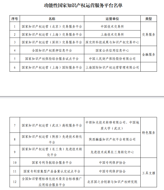 國家知識產(chǎn)權局認定12家功能性國家知識產(chǎn)權運營服務平臺