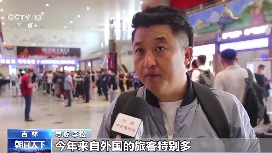 導(dǎo)游 李松:今年來(lái)自外國(guó)的旅客特別多,這個(gè)團(tuán)是這個(gè)月我?guī)У牡谖鍌€(gè)團(tuán)了。