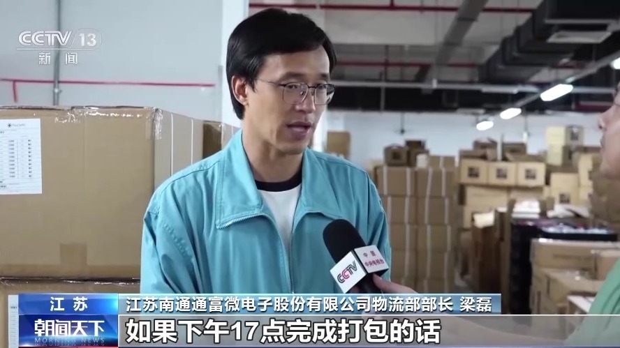 江蘇南通通富微電子股份有限公司物流部部長(zhǎng) 梁磊:我們當(dāng)天的出貨,如果17點(diǎn)完成打包的話,當(dāng)天晚上12點(diǎn)前,基本就能到達(dá)深圳??蛻舻囊恍┨丶奔覀兩踔亮璩烤湍芘伤偷轿?。