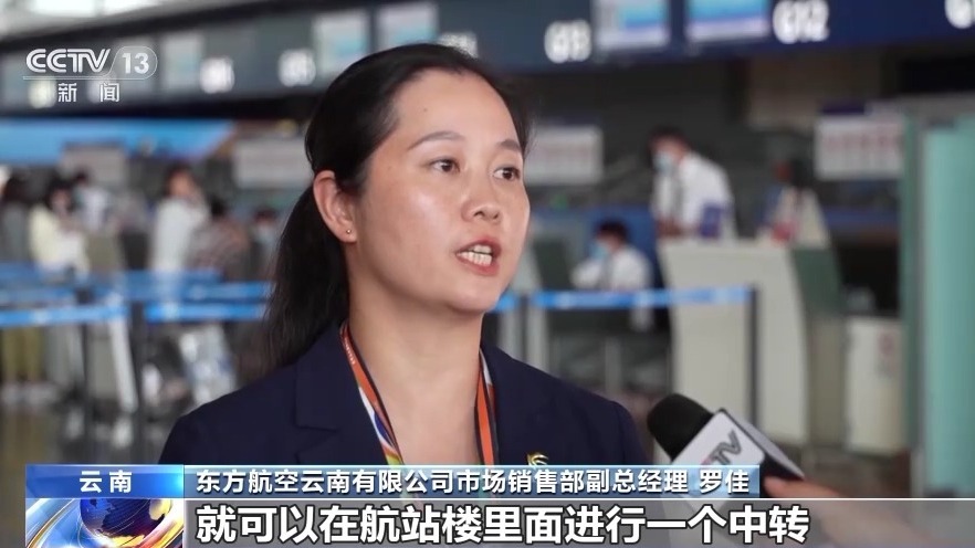 東方航空云南有限公司市場(chǎng)銷(xiāo)售部副總經(jīng)理 羅佳:旅客不需要出隔離區(qū),就可以在航站樓里面進(jìn)行中轉(zhuǎn),并且行李直掛,行李從始發(fā)站開(kāi)始不用二次提取。