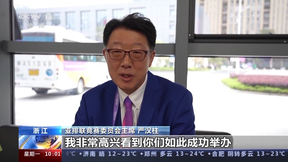 亞排聯(lián)競賽委員會主席嚴漢柱:我非常高興看到你們?nèi)绱顺晒εe辦亞運會的男排和女排比賽,場館內(nèi)外工作人員,他們在自己崗位上盡職盡責,沒有出現(xiàn)任何問題,有如此優(yōu)秀的場館,我想在未來見證這個場館舉辦更多的排球國際賽事,我還會再來的。