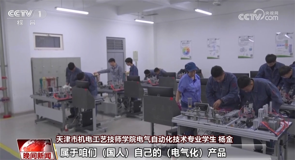 天津市機(jī)電工藝技師學(xué)院電氣自動化技術(shù)專業(yè)學(xué)生 楊金:讓每一顆螺絲、每一個部件都能發(fā)揮出它最大的作用,這就是我的需要和目標(biāo)了。(未來希望)自主去研發(fā)需要使用的機(jī)器,可以去創(chuàng)造(更多)屬于咱們(國人)自己的(電氣化)產(chǎn)品。