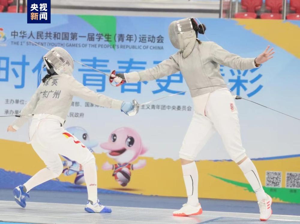 11月7日,第一屆全國學(xué)生(青年)運動會擊劍男女佩劍團體決賽在廣西體育局三塘體育訓(xùn)練比賽基地綜合體育館進行,南京隊和廣州隊?wèi)?zhàn)勝各自對手奪得金牌。
