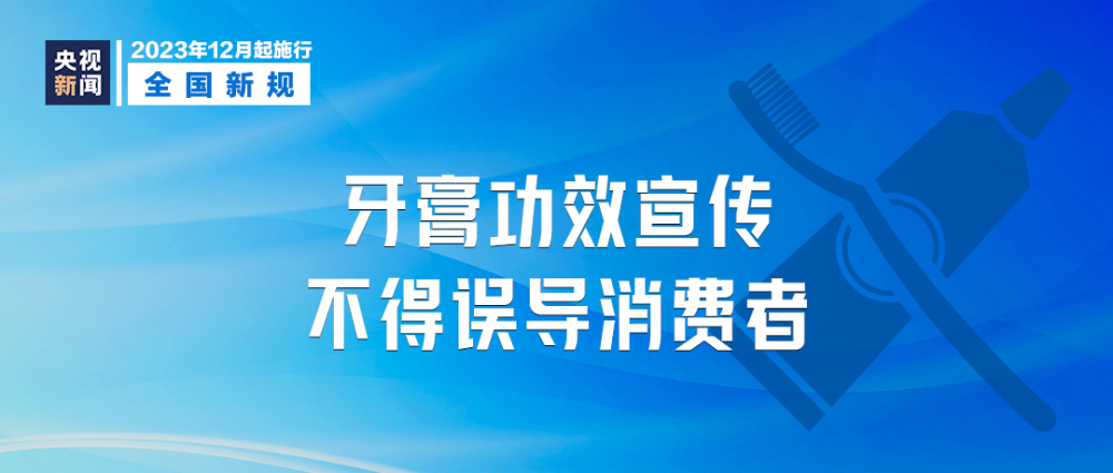 《牙膏備案資料管理規(guī)定》自12月1日起施行。其中規(guī)定牙膏的功效宣稱應(yīng)有充分的科學(xué)依據(jù),禁止標(biāo)注明示或暗示具有醫(yī)療作用的內(nèi)容,對添加氟化物的非兒童牙膏應(yīng)當(dāng)標(biāo)注“本產(chǎn)品不適用于兒童”等。