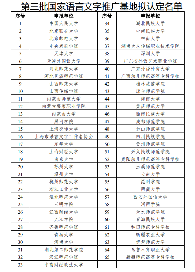 第三批國(guó)家語(yǔ)言文字推廣基地?cái)M定名單(圖源:教育部官網(wǎng))