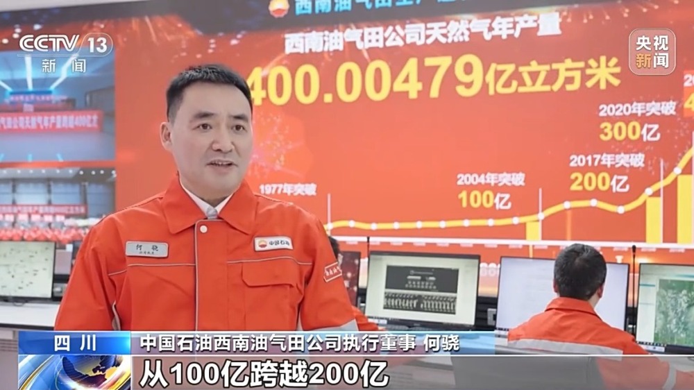 中國石油西南油氣田公司執(zhí)行董事 何驍:從100億跨越200億,我們用了13年的時(shí)間,從200億到建成300億戰(zhàn)略大氣區(qū)僅用3年,今年上產(chǎn)400億,占同期全國天然氣產(chǎn)量的1/5,離實(shí)現(xiàn)2025年上產(chǎn)500億方的目標(biāo)又近了一步。