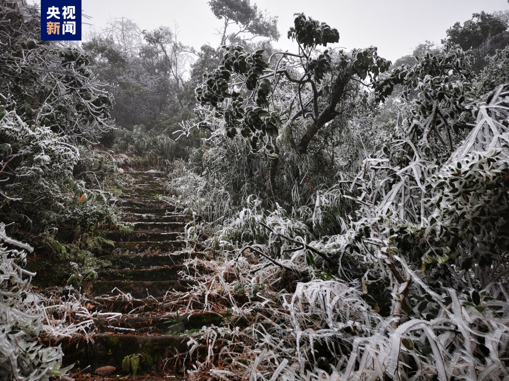 受天氣影響,廣西大明山半山腰出現(xiàn)道路結(jié)冰的情況,請廣大游客注意安全。