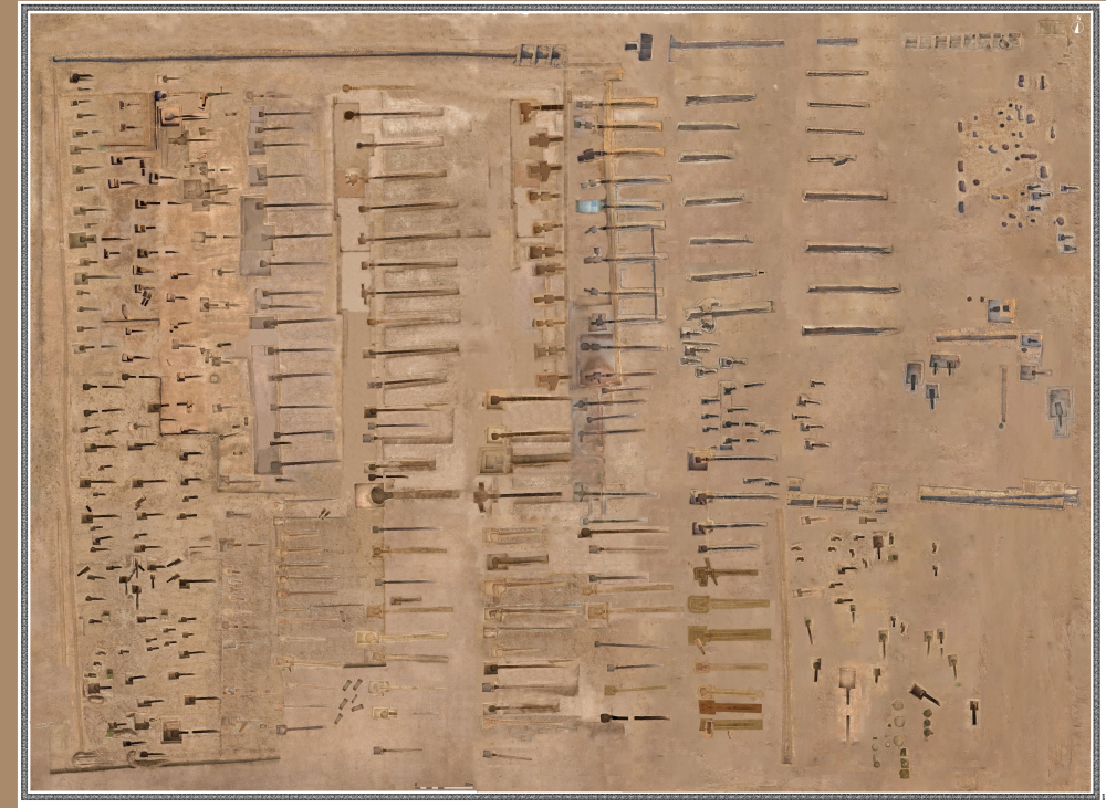 下站遺址總面積約23萬平方米,共發(fā)現(xiàn)祭祀遺跡1400余個。目前,考古發(fā)掘各類祭祀坑99座。祭祀坑分為長條形、長方形、洞室三種形制。春秋中期,祭祀坑主要為南北向長條形,坑內(nèi)主要埋藏牛牲。春秋晚期,以東西向長方形坑為主,除動物犧牲坑外,最重要的是出現(xiàn)了車馬坑,坑內(nèi)埋藏實用車,車馬器形制與秦公一號大墓二號車馬坑出土車馬器幾乎相同。