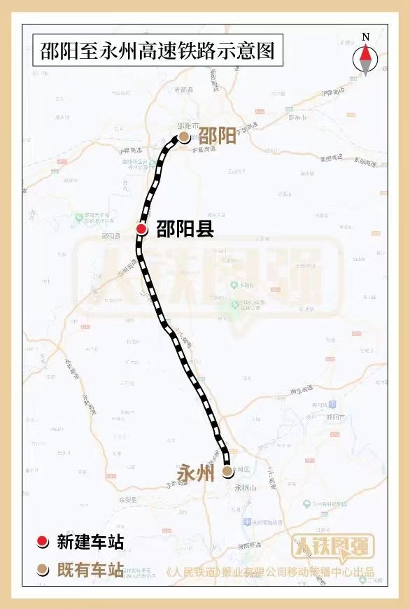 邵永高鐵位于湖南省境內(nèi),全長約96公里,設(shè)計時速350公里,線路自邵陽市邵陽站引出,向南經(jīng)邵陽市大祥區(qū)、邵陽縣,永州市東安縣、冷水灘區(qū),接入永州站,共設(shè)邵陽、邵陽縣、永州3座車站,其中邵陽縣站為新建車站,其他為既有車站,建設(shè)工期4年。
