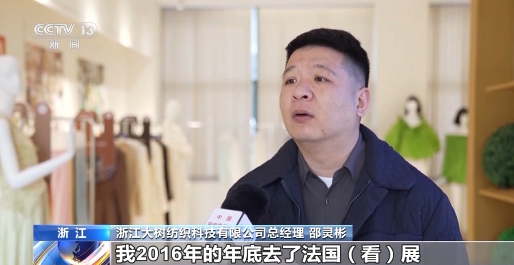 浙江大樹紡織科技有限公司總經(jīng)理 邵靈彬:我2016年的年底去了法國看展,基本上是奢侈品買面料的一個展會。我當時給自己設(shè)的一個夢想,10年之內(nèi)我想進展會。