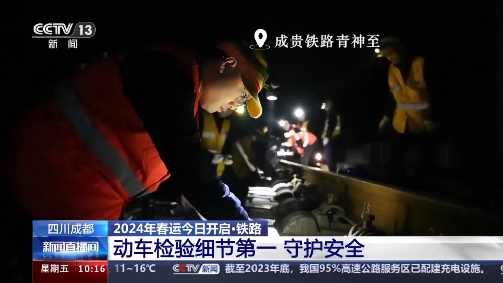 1月26日凌晨0時15分,等待著投入春運的高鐵列車一字排開。在守護(hù)列車安全的動車檢修庫里,每天最忙的時段是當(dāng)天22時到次日5時。今年伴隨著川青鐵路的首段開通,這里又增加了針對高原動車組的特別檢查項目,力保安全、守護(hù)春運。