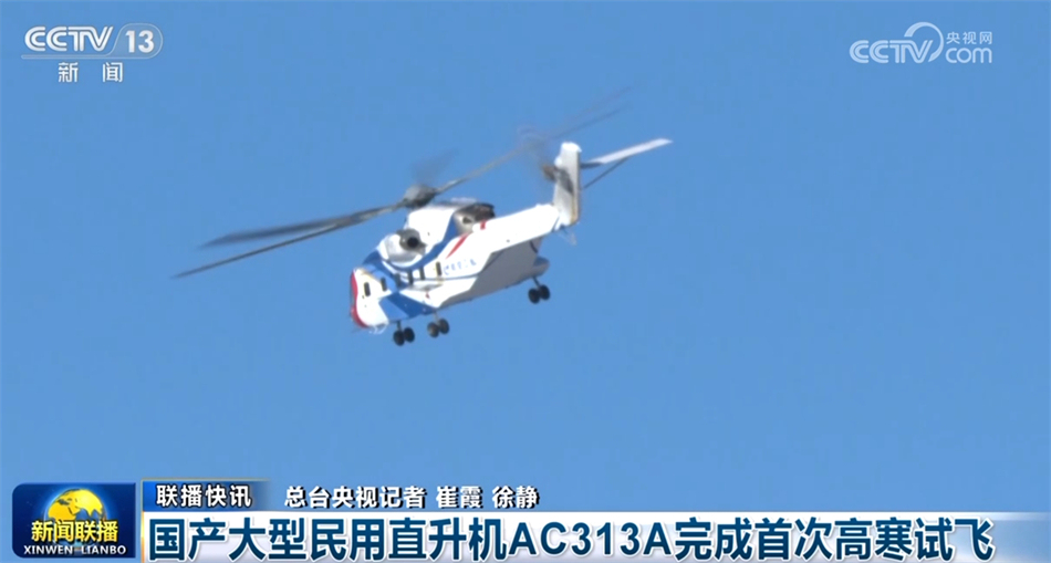 國產(chǎn)大型民用直升機AC313A完成首次高寒試飛