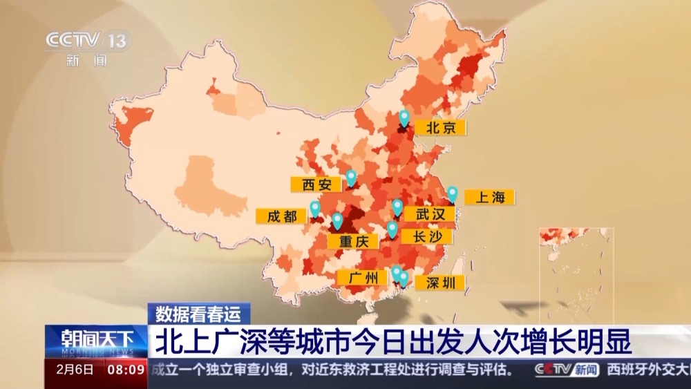 今天是臘月二十七,我們繼續(xù)用熱力圖來(lái)感受返鄉(xiāng)路上的新動(dòng)向。 昨天(5日)選擇乘坐列車出行的旅客大約有1240萬(wàn)人次,鐵路出行已連續(xù)五天超過(guò)1200萬(wàn)人次,持續(xù)高位運(yùn)行。