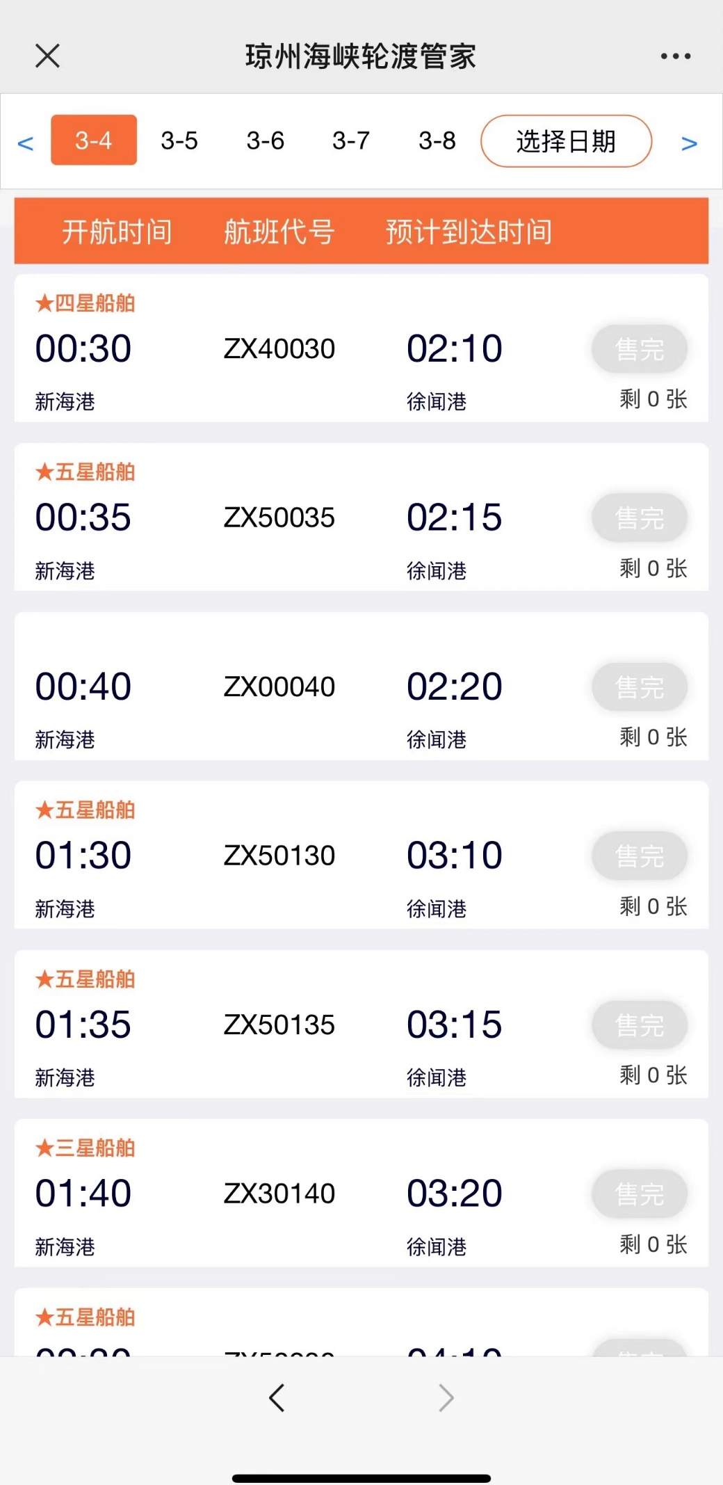 記者18日晚從“瓊州海峽輪渡管家”上查詢發(fā)現(xiàn),3月5日之前從??谛阌⒏?、新海港出港前往廣東湛江徐聞縣的新能源小汽車輪渡船票均顯示售罄;3月5日當天及之后的票暫無法購買。劉先生說:“這已經(jīng)是正常上班的時間了,至少我們看到周邊的這些新能源車跟初七、初八之前的車輛是相等的;跟去年或者往年比的話,滯留車還是比較多?!?/p>