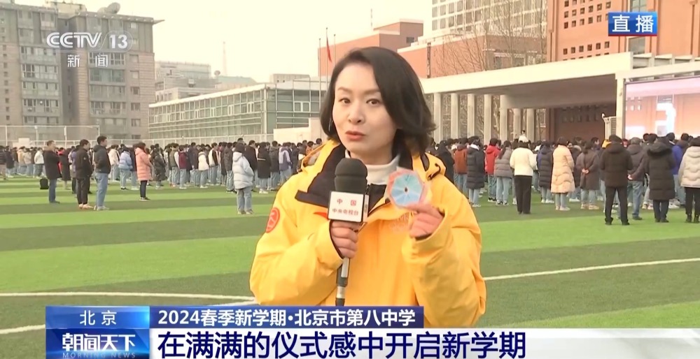 總臺央視記者 李晶晶:北京市第八中學(xué)高中部,近2300名高中生齊聚國旗下,舉行新學(xué)期的第一次升旗儀式,在滿滿的儀式感中開啟新的學(xué)習(xí)生活。今年是龍年,有句祝福語叫“龍行龘龘,前程朤朤”,現(xiàn)在正在進(jìn)行的國旗下的演講,題目就是《龘龘朤朤間是向上的力量》,老師祝福學(xué)生們像龍一樣騰飛而上,同時也是鼓勵他們要有夢想,為實(shí)現(xiàn)夢想不斷努力向上。