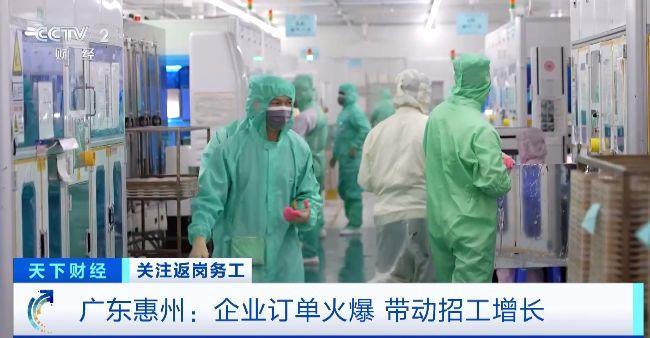 近期各地迎來務工返崗高峰。在廣東惠州,記者在一家企業(yè)的生產(chǎn)車間看到,開工第一天,五條智能化生產(chǎn)線就全部運轉(zhuǎn)起來。企業(yè)訂單的火爆也帶動了招工需求的增長。